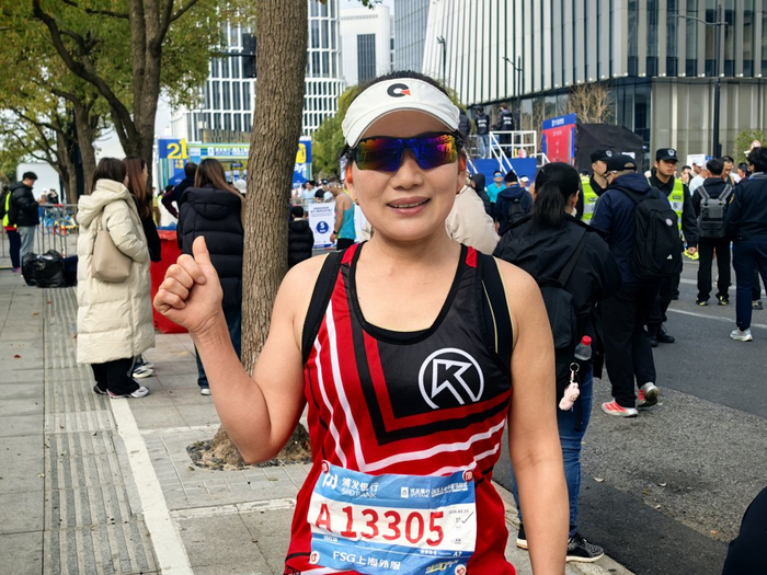 5年前,胡红旗因为身体不好,如今她已经可以完成全马赛事。“上海的赛道很平缓,观众很热情,补给也到位,在这里跑步,是一种享受。”胡红旗上一周刚刚 参加完上海的女子半马,成绩是1小时37分,虽然达到1小时36分的目标,但是她把自己的最好成绩(PB)又提高了两秒,说起跑步,胡红旗强调,跑步的喜悦无关名次,只关乎坚持与收获,“我感觉跑步还是需要的,可以增强免疫力,我的性格脾气也因跑步改善了不少。”