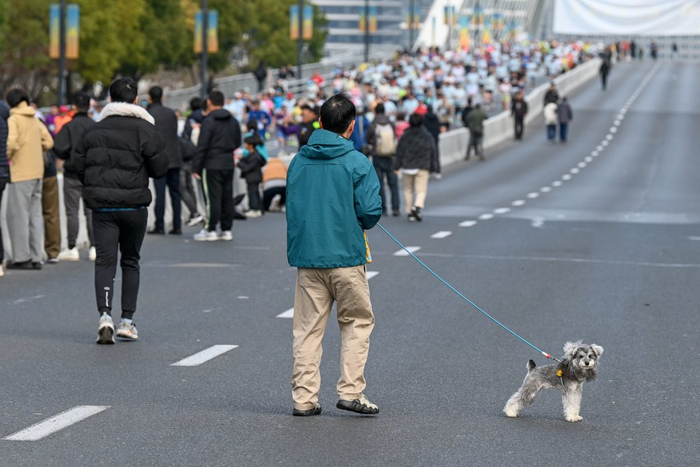 上海半马和上海马拉松如今已经成为大多数人生活里的一部分。 澎湃新闻记者 朱伟辉 摄同样第一次参加上海半马的张其尤,就是这样一路在身边陪跑员的鼓励下以及赛道两旁观众的加油声中坚持到了最后。张其尤从2025年1月份才开始接触跑步,在站上上半马的赛道前,他甚至没有怎么练过长距离。但他希望通过自己的坚持,让更多人看到视障跑者也能够走出家门并且融入社会,所以他报名参加了这次上海半马。